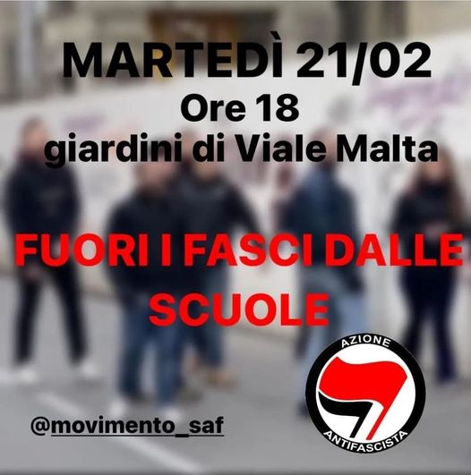 Riteniamo più che mai necessario discutere collettivamente su come reagire alla presenza dei fascisti sul territorio e come contrastare la loro propaganda. Sicuramente non mancheranno le occasioni nel prossimo futuro, ma iniziamo col scendere in strada a fianco degli studenti, portando solidarietà con i nostri corpi oltre che con le nostre parole.