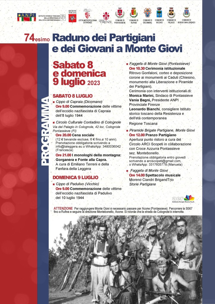 Sabato 8 e domenica 9 luglio torna il Raduno dei Partigiani e dei Giovani a Monte Giovi, nella 74esima edizione. Due giorni di eventi all’insegna della socialità e della condivisione di un luogo simbolo per la Storia Partigiana e per la Lotta di Liberazione nella nostra regione.