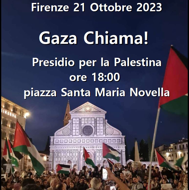 Nuovo presidio per la Palestina sabato 21 ore 18:00 in piazza Santa Maria Novella.