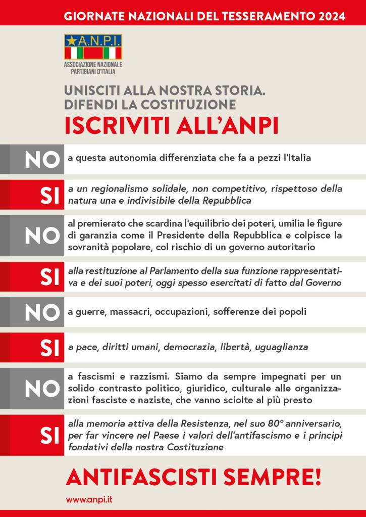 Ore 10.30: Assemblea degli iscritti su temi di attualità (guerra e situazione politica internazionale, attività della sezione, mobilitazioni sul territorio, premierato e riforme costituzionali)
