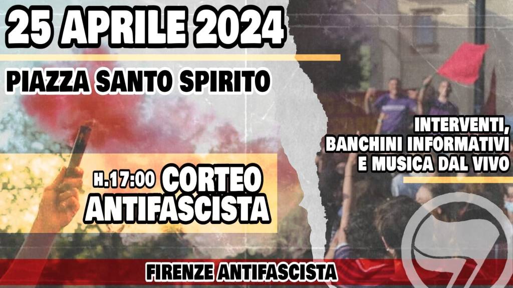 Lo faremo per tenere viva la memoria dei partigiani che hanno voluto ed hanno animato quella piazza, per portare avanti il nostro impegno pacifista ed antimilitarista, per solidarizzare con i popoli in lotta, e per sostenere le mobilitazioni degli antifascisti fiorentini.