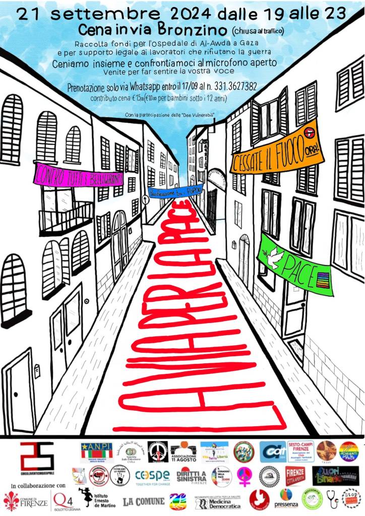 Durante la serata ci sarà una raccolta fondi a sostegno dell’ospedale Al-Awda a Gaza, per i lavoratori che rifiutano la guerra, per chi rifiuta di parteciparvi, un gesto concreto per aiutare chi soffre e chi resiste all’oppressione.