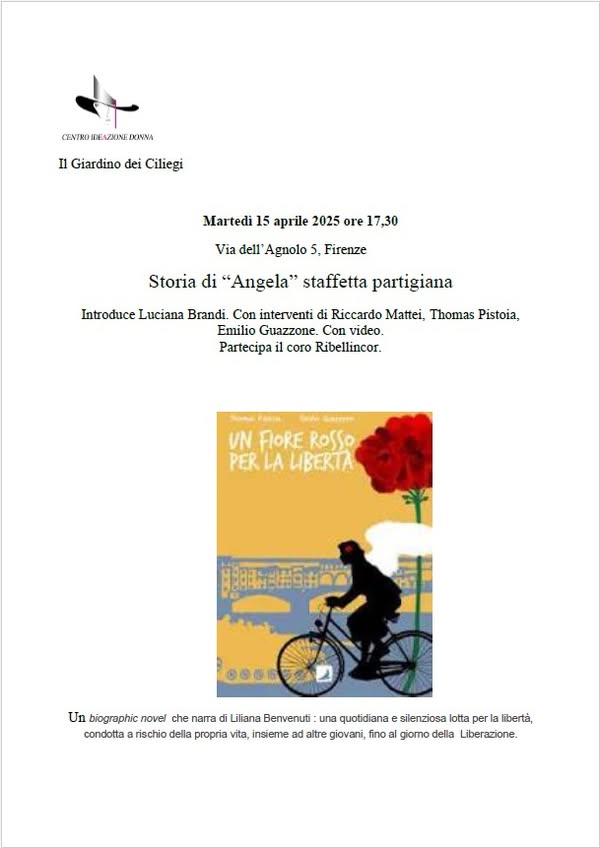 Ore 17.30, presso il Giardino dei Ciliegi (Via dell’agnolo 5): un’altra occasione per assistere alla presentazione del biographic novel su Liliana Benvenuti “Angela”.