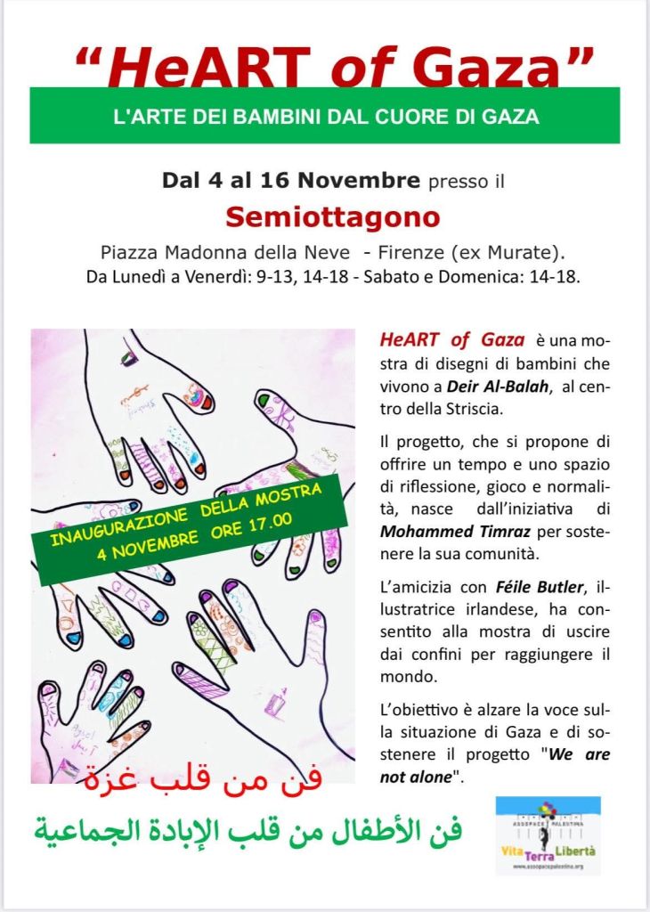 Segnaliamo la mostra organizzata da Assopace Palestina, con i disegni dei bambini di Dire Al-Balah, nella striscia di Gaza.