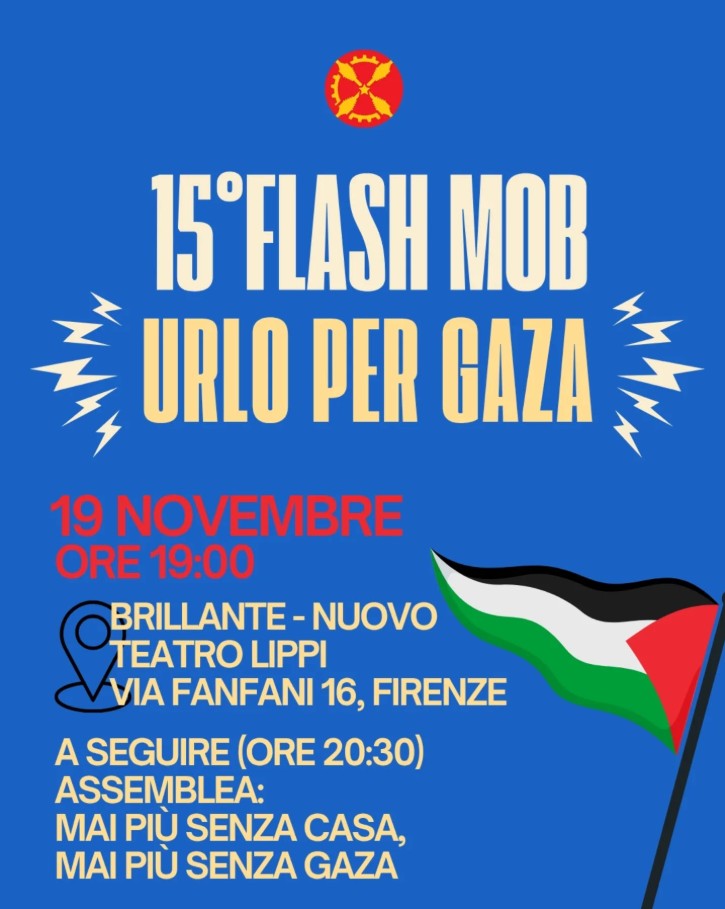 Ore 19.00, Brillante – Nuovo teatro Lippi.Rilanciamo il 15° Urlo per Gaza. Free Palestine!!! Condividi: Condividi su X (Si apre in una nuova finestra) X Condividi su Facebook (Si apre in una nuova finestra) Facebook Mi piace Caricamento... Correlati