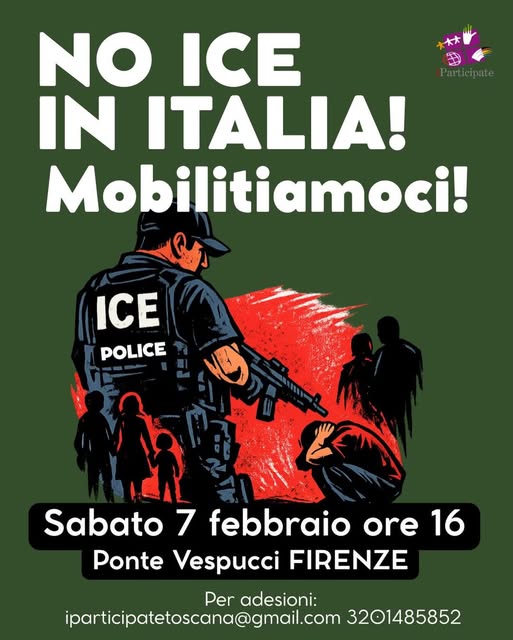 Ore 16.00, Ponte Vespucci: l’annunciato ruolo dell’ICE nella sicurezza alle Olimpiadi ha giustamente suscitato preoccupazione ed indignazione, specialmente alla luce dei recenti omicidi di cui si è resa responsabile negli USA.