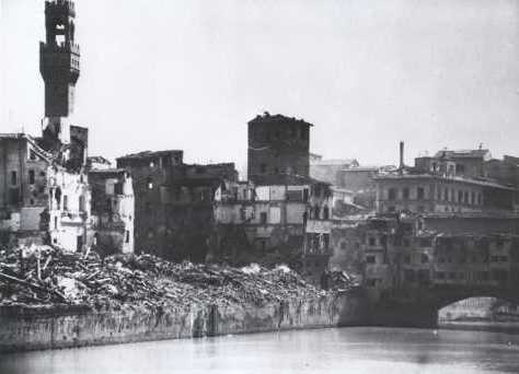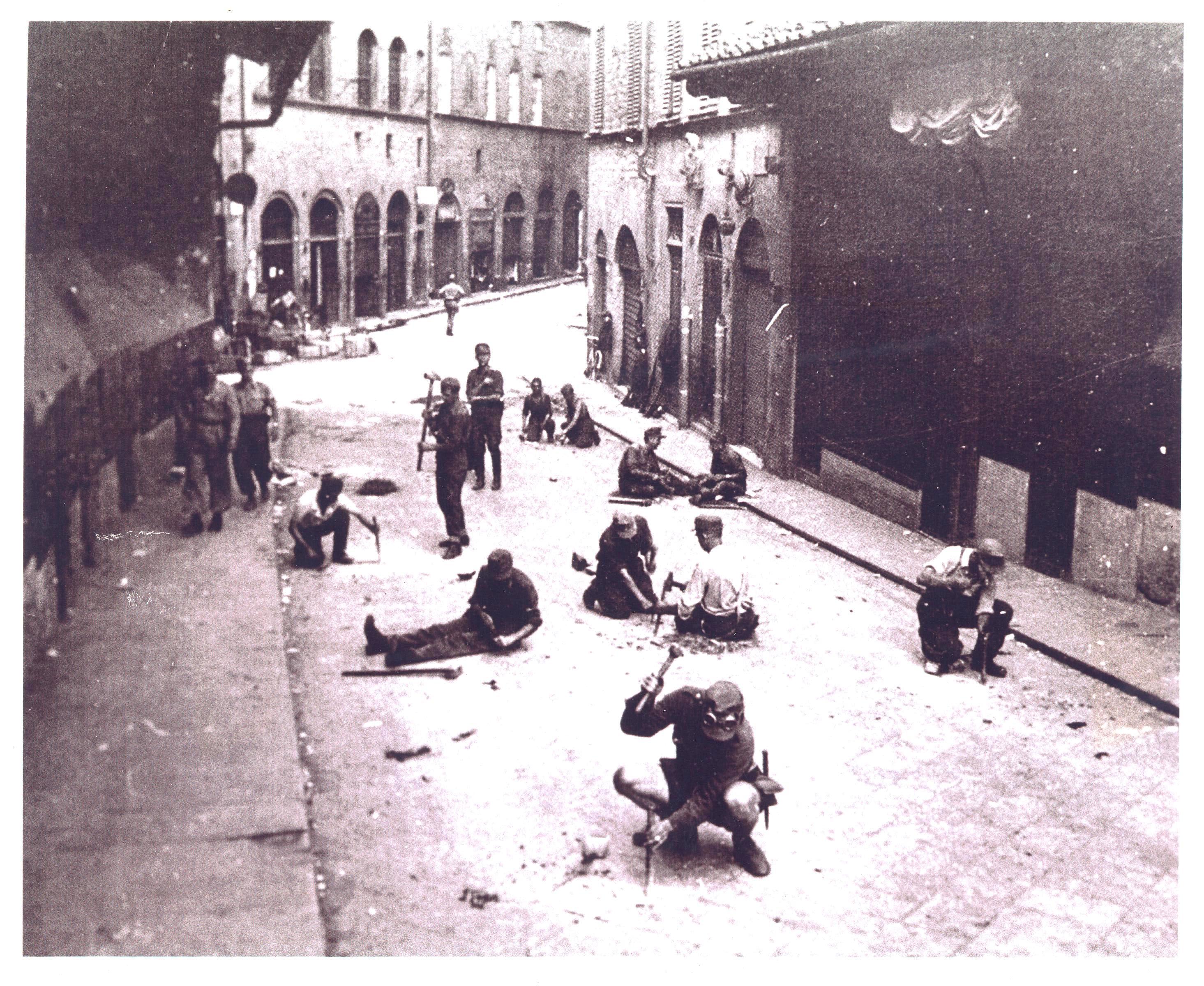 Genieri tedeschi mentre stanno preparando le buche per minare il Ponte Vecchio